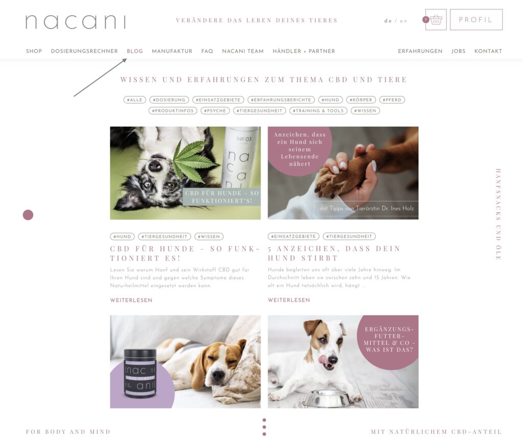 Das passende nacani Produkt für dein Tier zu finden ist ganz easy